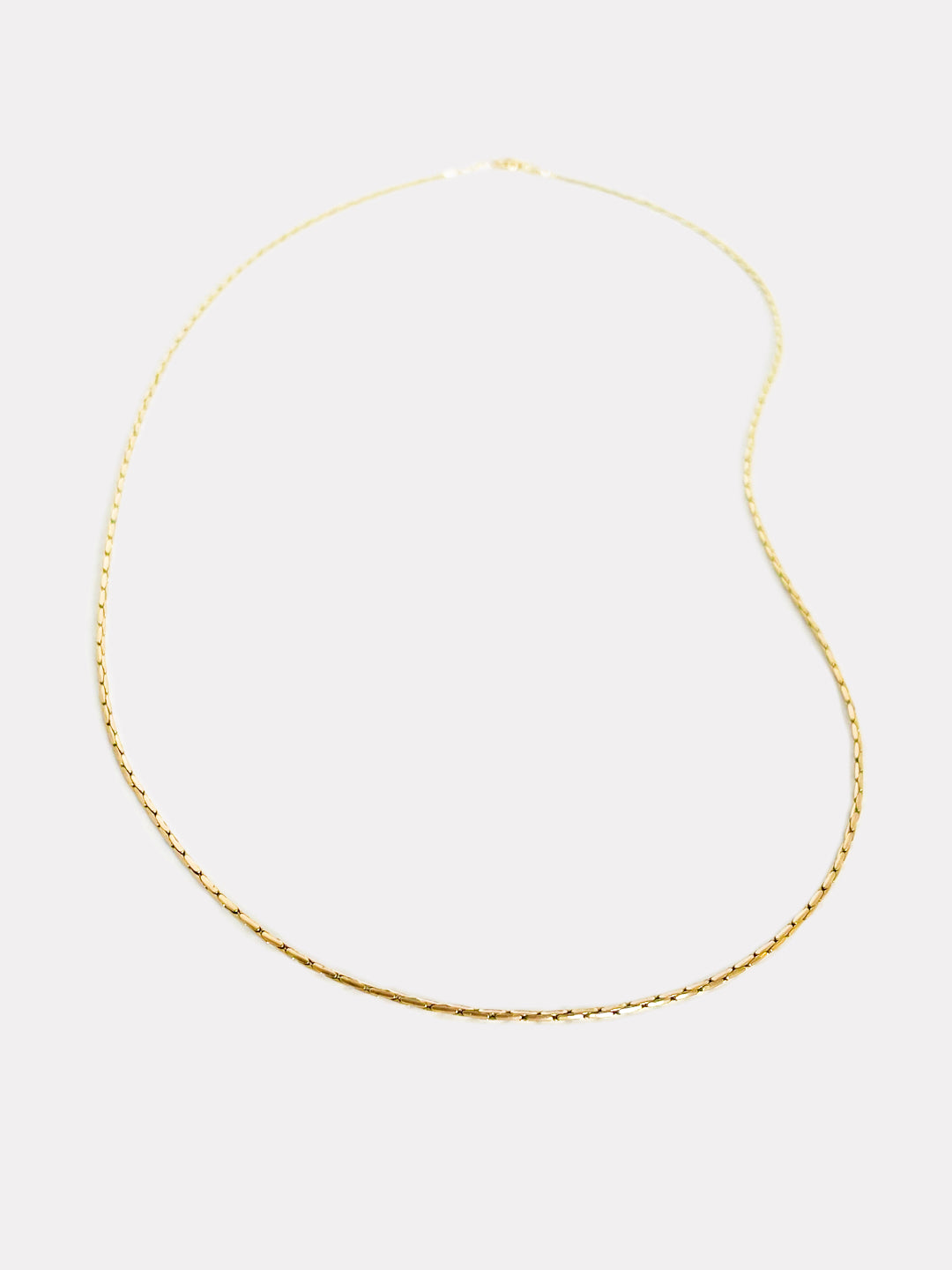 Solas o combinadas, las cadenas son esenciales. La cadena N2 Twiggy es semi-rígida redonda, hecha en latón con baño de tres micras en oro reciclado amarillo de 16 quilates.