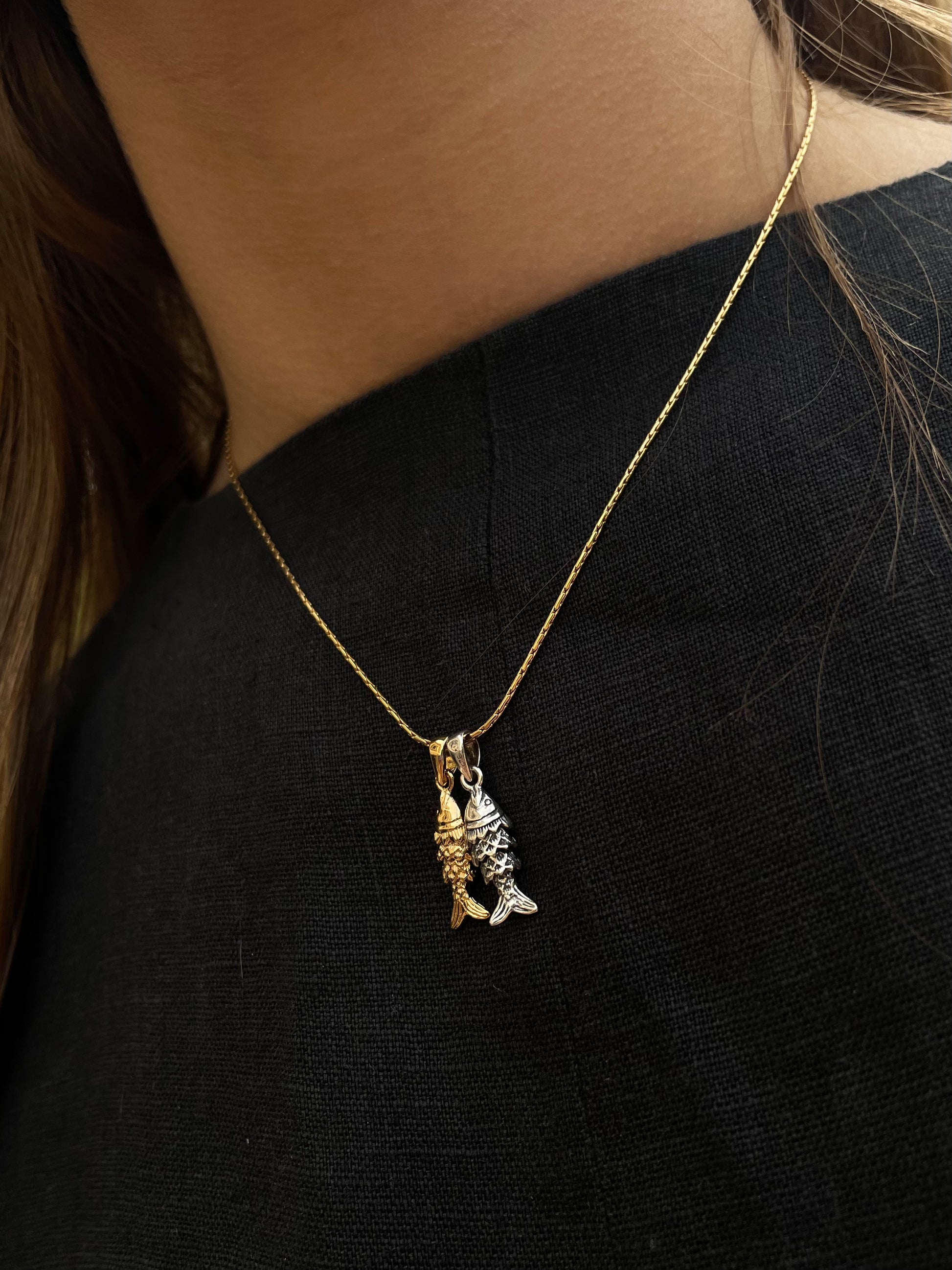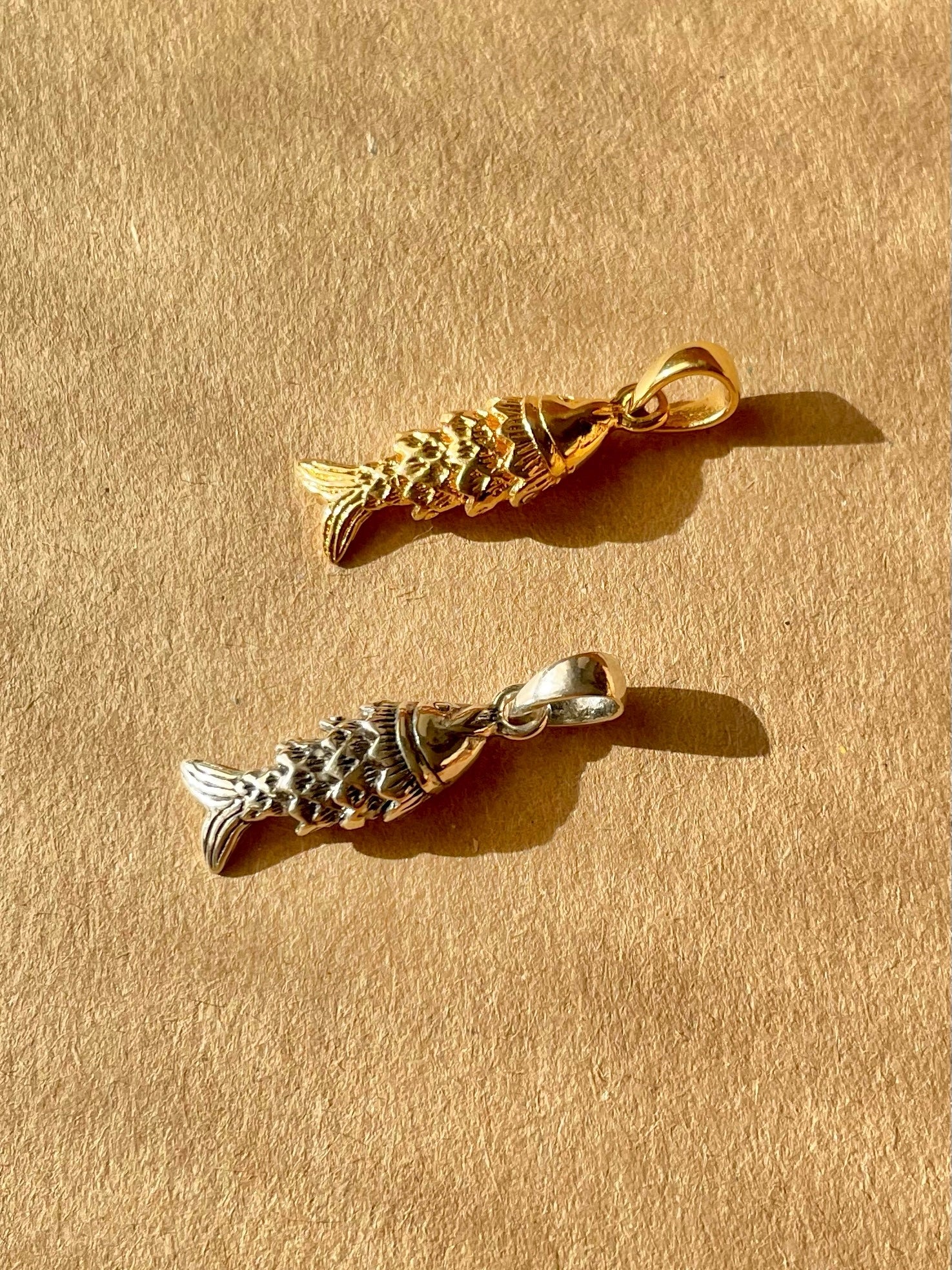 El colgante Poisson simboliza abundancia y movimiento inspirados en el Mediterráneo. Este pequeño y elegante pez está compuesto por piezas conectadas, por lo que se mueve como lo haría en el mar. Hecho en plata 925. Cadena no incluida, compatible con cadenas N2 Twiggy y N3 Bolitas.