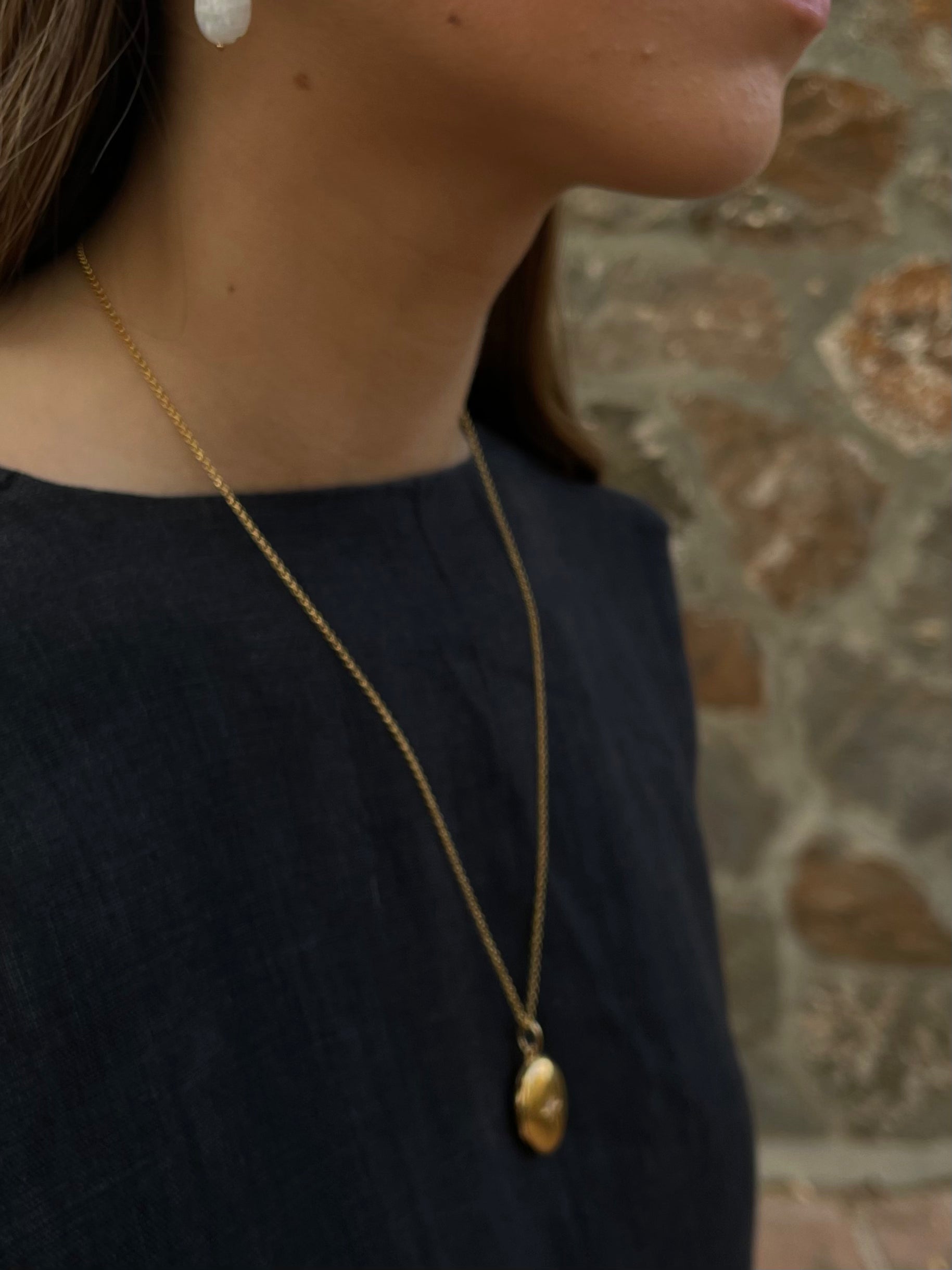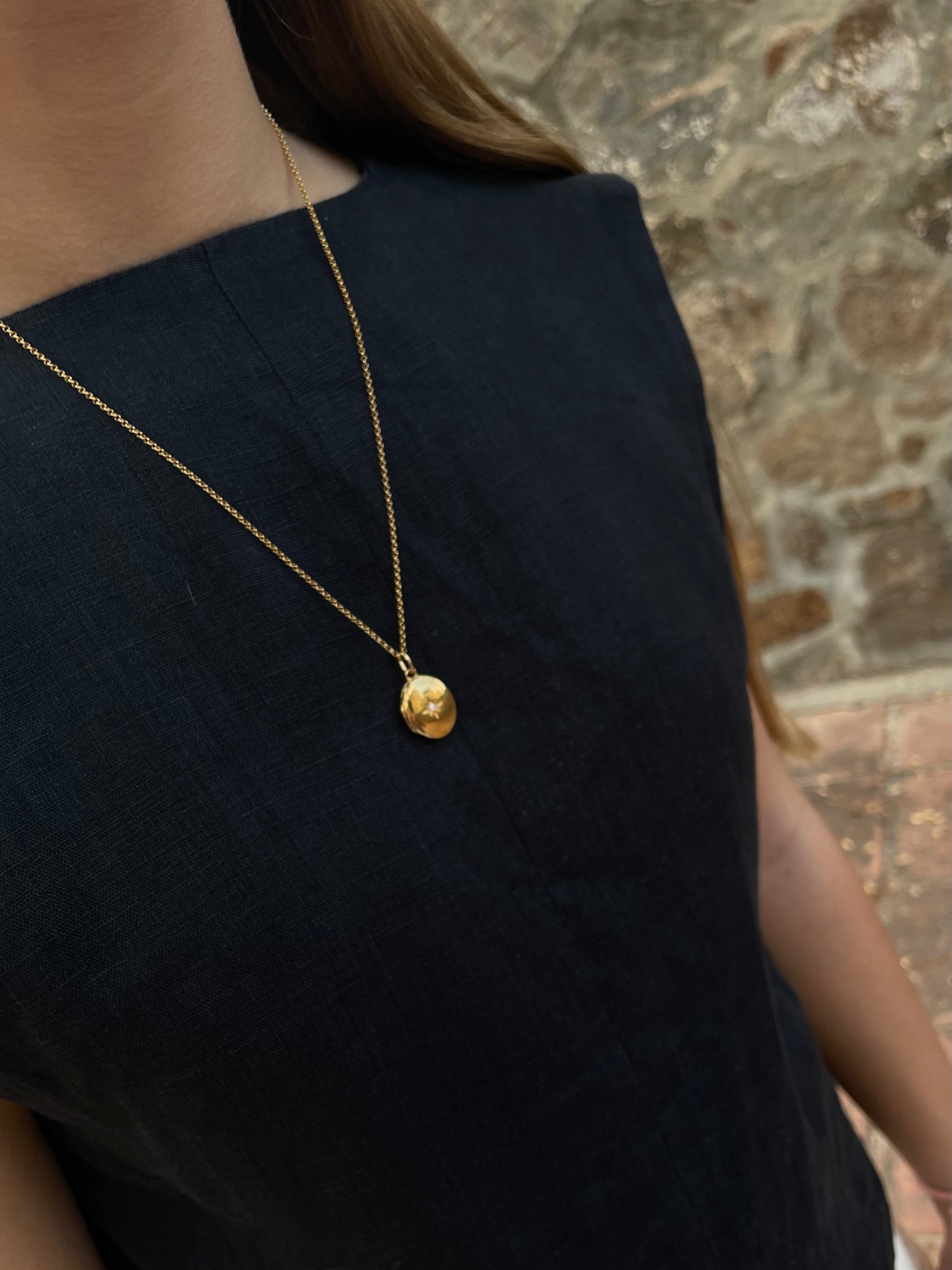 La magia y el misterio aumentan con lo que atesora una estrella. Supernova está inspirado en el secreto que guardan los astros que coronan nuestro cielo. Collar con medallón decorado con la Estrella del Norte, el mismo que se abre y cierra para poder albergar tus tesoros, y cadena Rock And Rolo. Hecho en latón con baño de tres micras de oro amarillo de 18 quilates y circonita blanca. Elige el largo de tu cadena 40 / 50 / 60 cm.